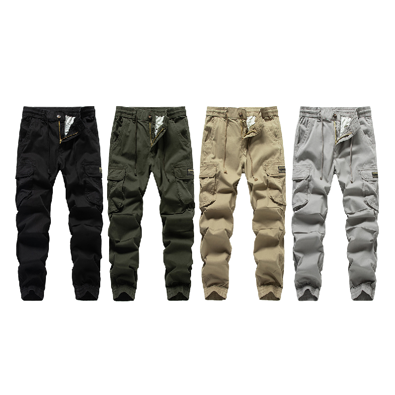 GorgeousBen Men's High quality ins hot selling retro vintage army green khaki black gray casual cargo jogger pants men with zipper.