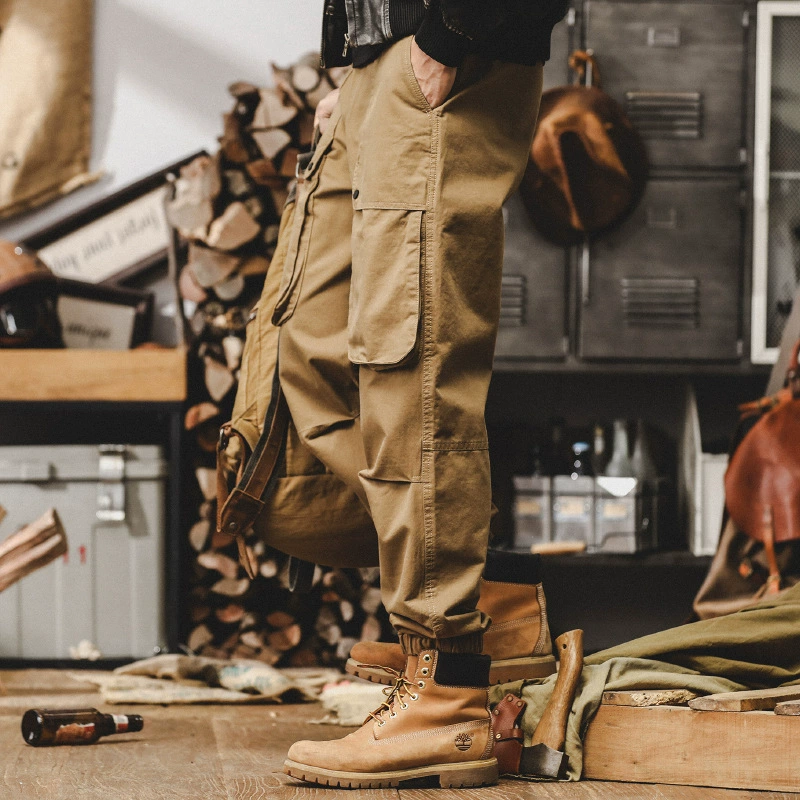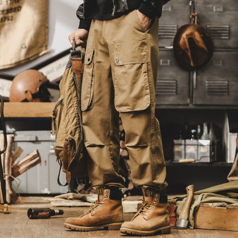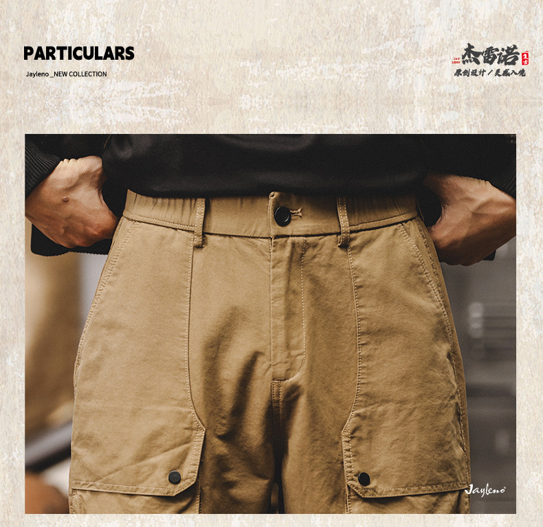 Home > All Proudcts > GorgeousBen Men's Vintage American Loose Workwear Pants 2025 New Multi-pocket Paratrooper Trousers Autumn Casual Pants.