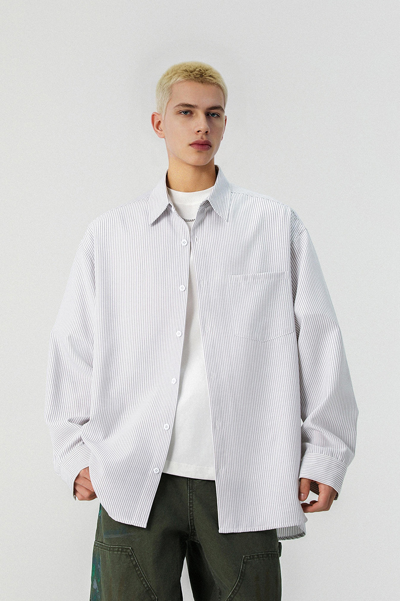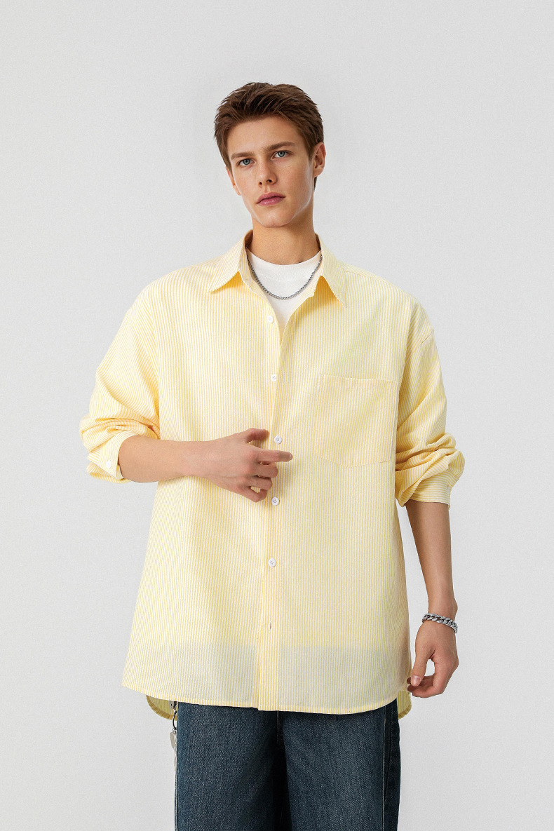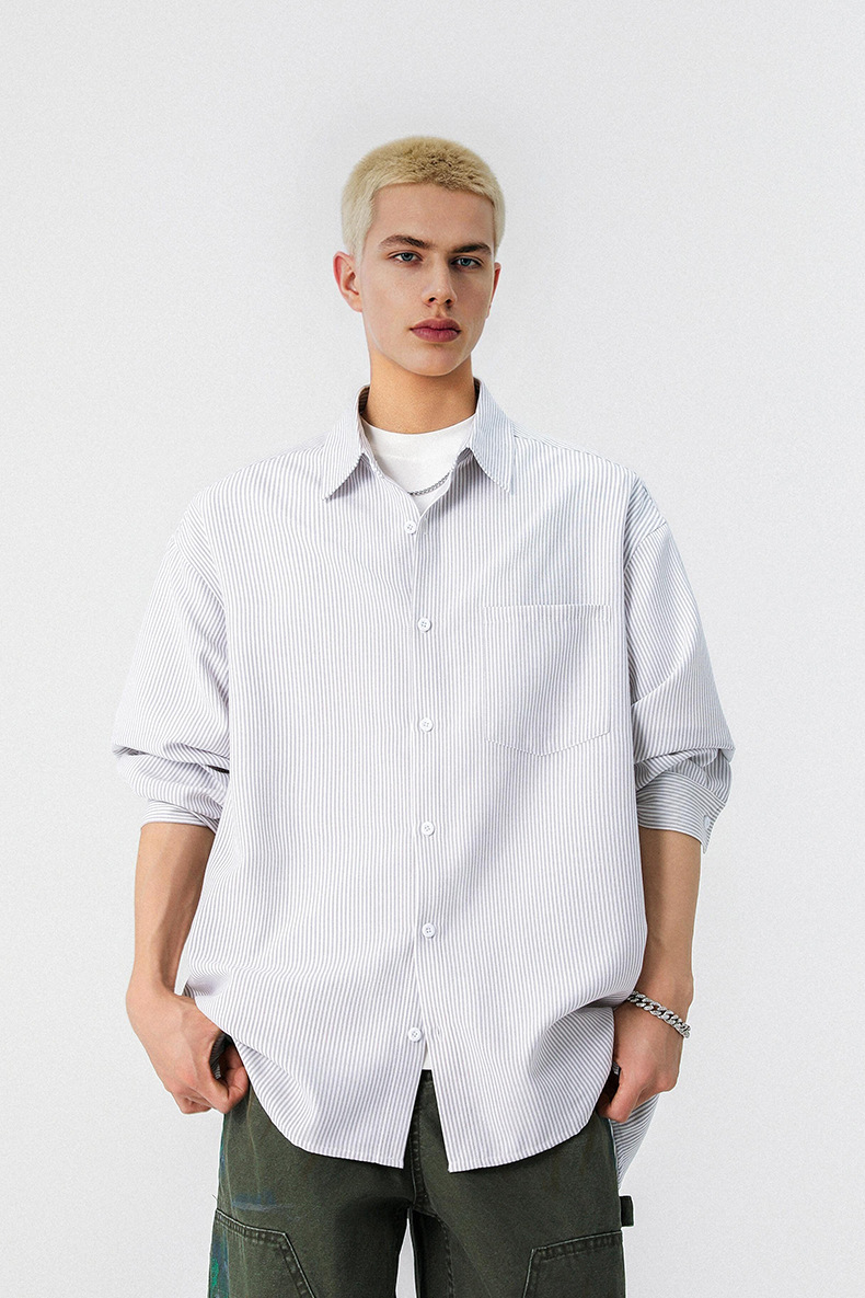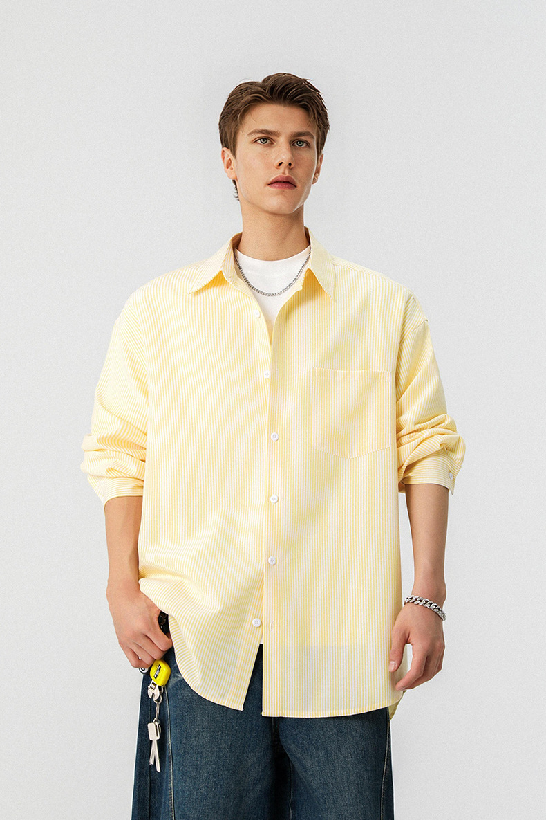 GorgeousBen Men’s Loose Fit Striped Button-Down Shirt, Windproof Color Block Casual Long Sleeve Top for Spring Autumn, Sizes XS-2XL