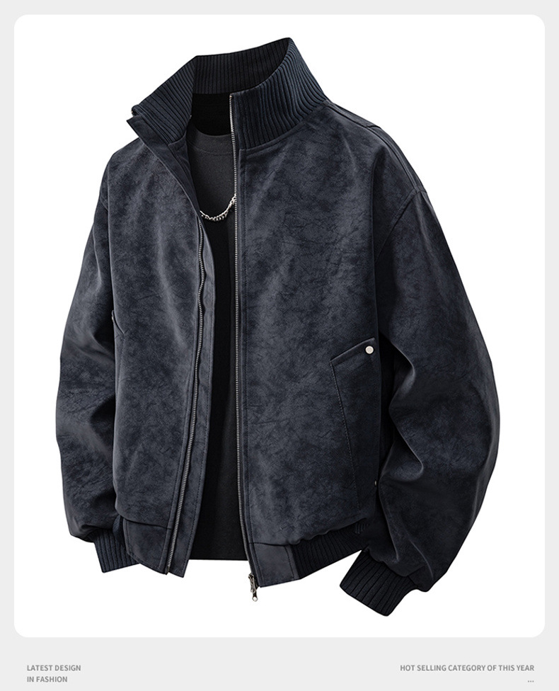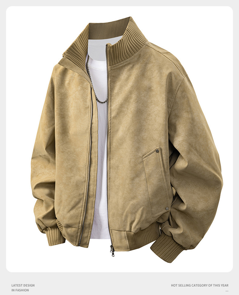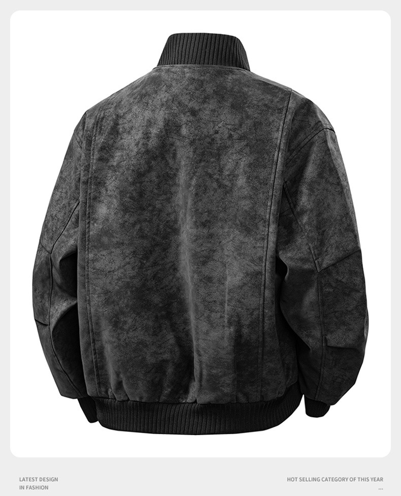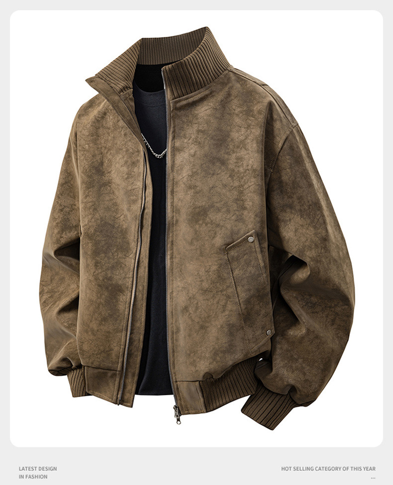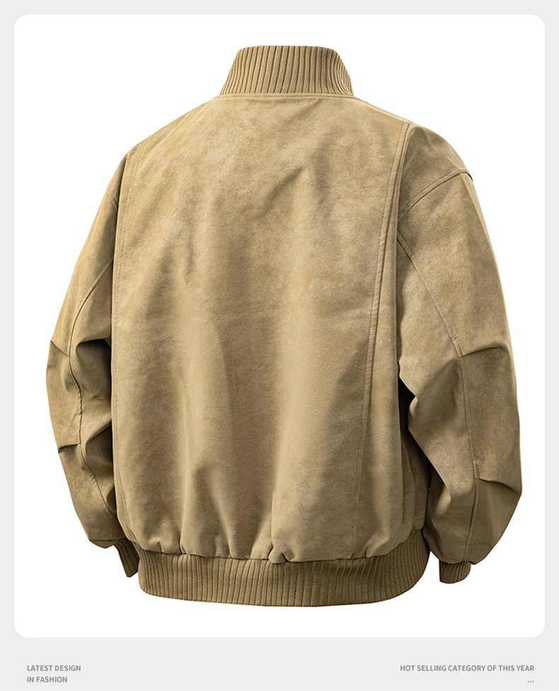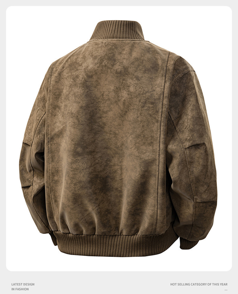 GorgeousBen Men’s Vintage PU Leather Bomber Jacket, Loose Fit Windproof Casual Coat with Ribbed Cuffs, for Spring Autumn, S-5XL