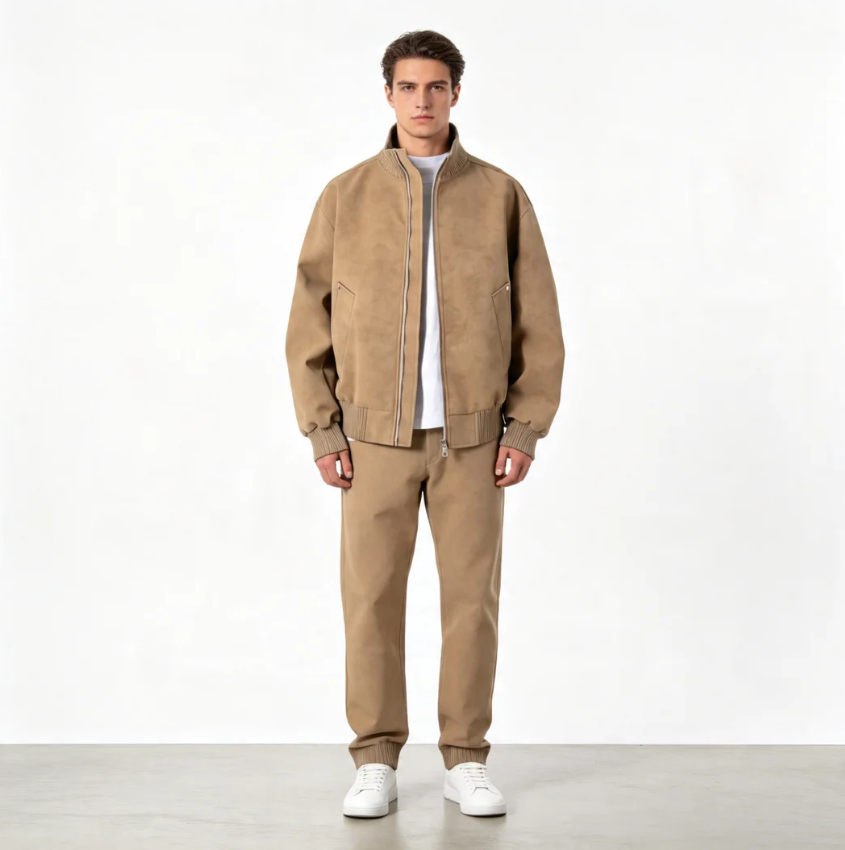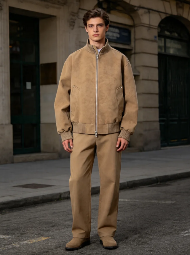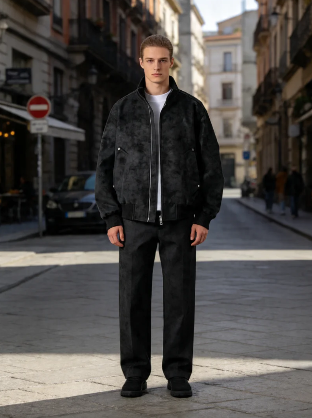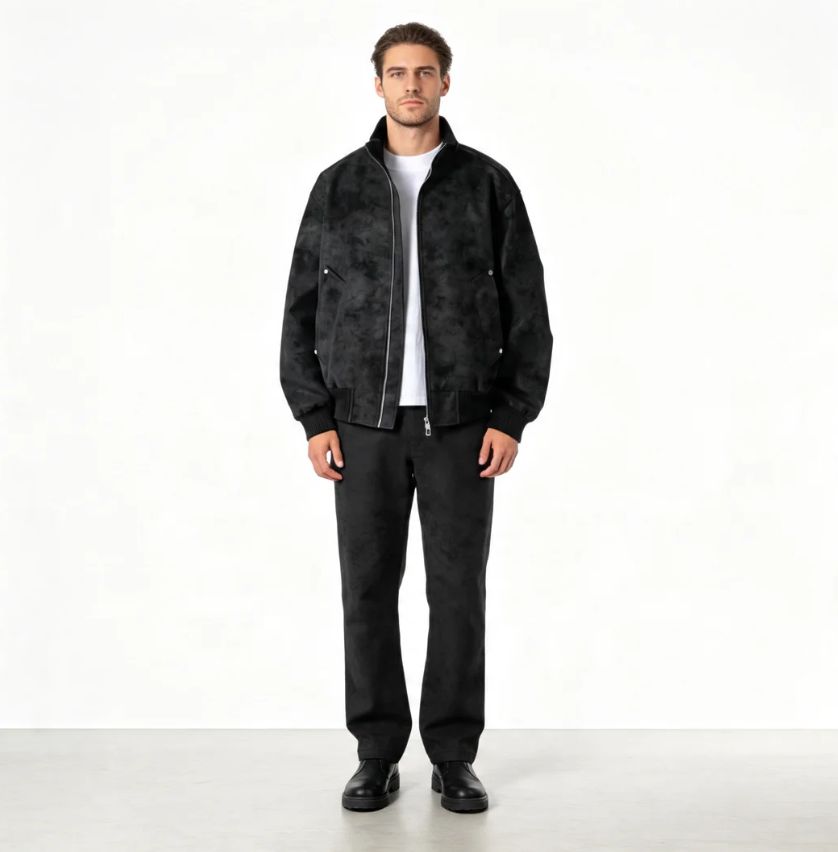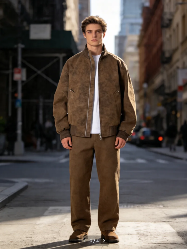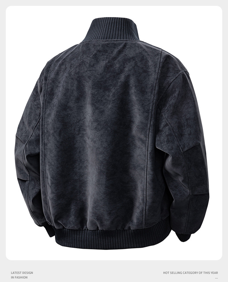 GorgeousBen Men’s Vintage PU Leather Bomber Jacket, Loose Fit Windproof Casual Coat with Ribbed Cuffs, for Spring Autumn, S-5XL