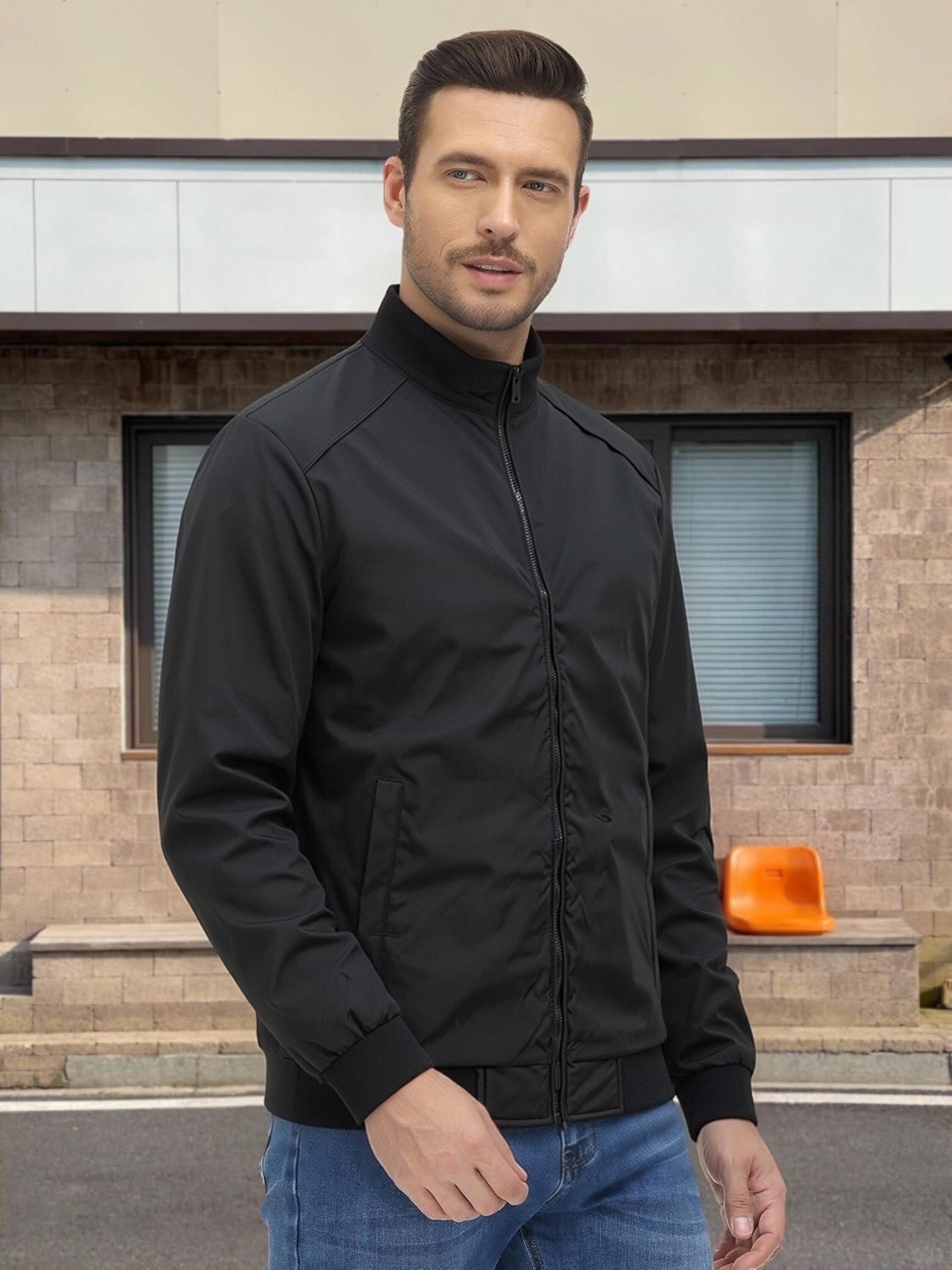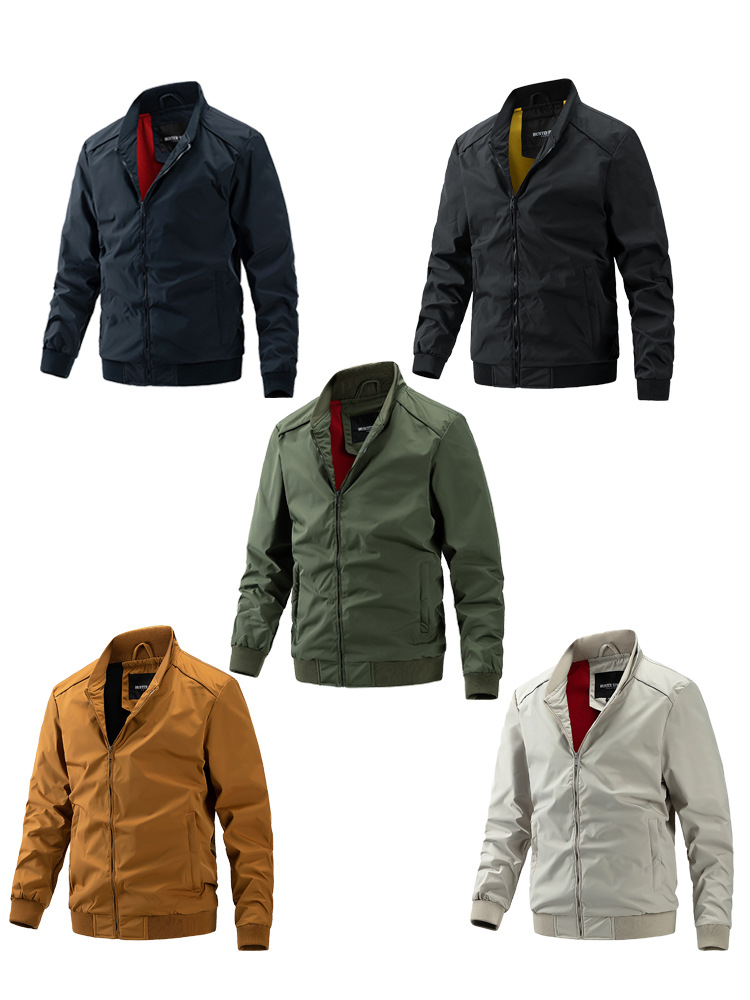 Cross-Border Stand Collar Business Men's Jacket Casual Thin Baseball Jacket Trendy Men's Long-Sleeve Mid-Length Jacket