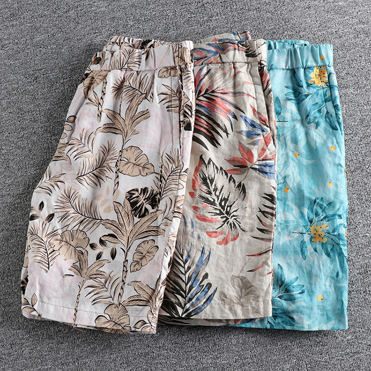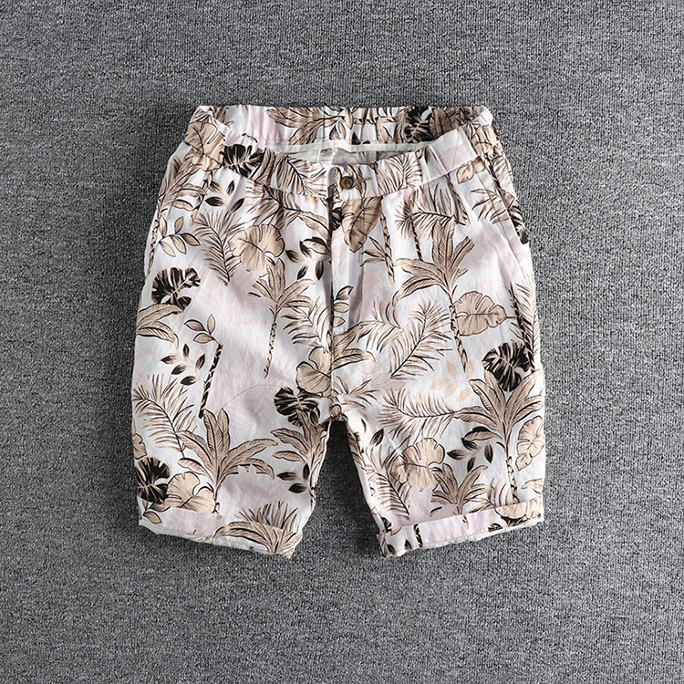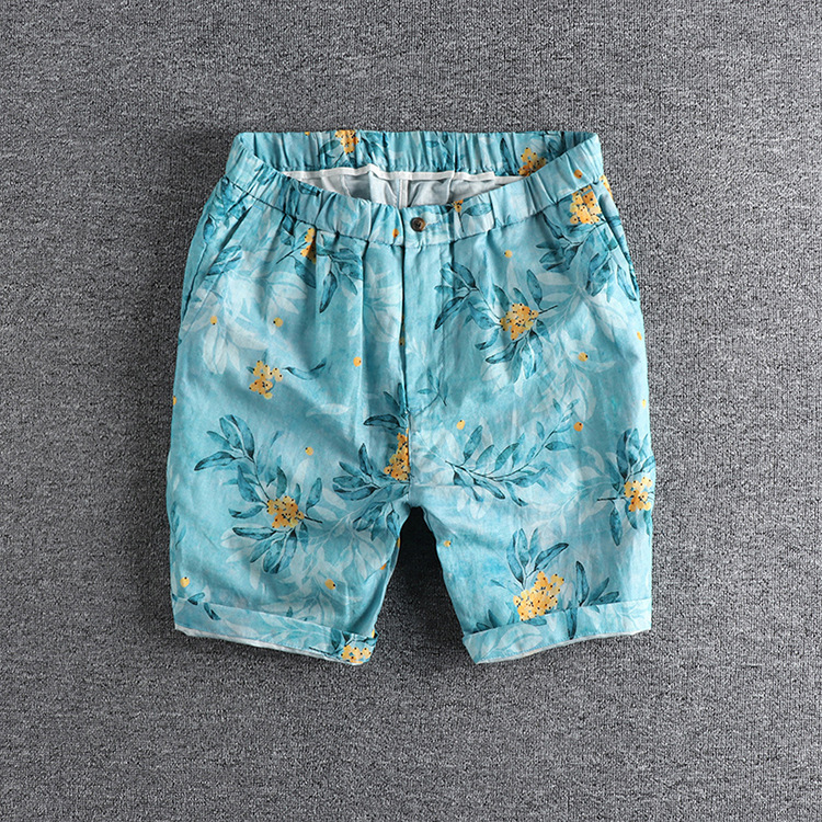 GrogeousBen Men's loose casual shorts printed men's style five points men's beach pants Europe and the United States seaside holiday