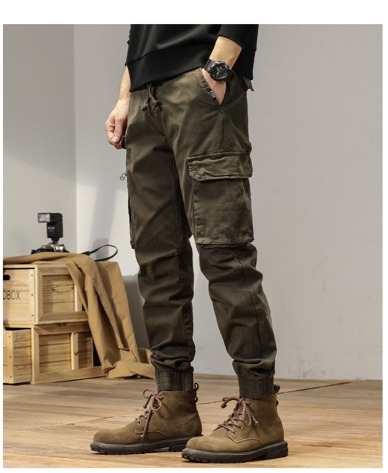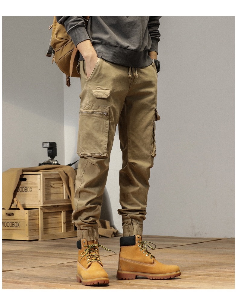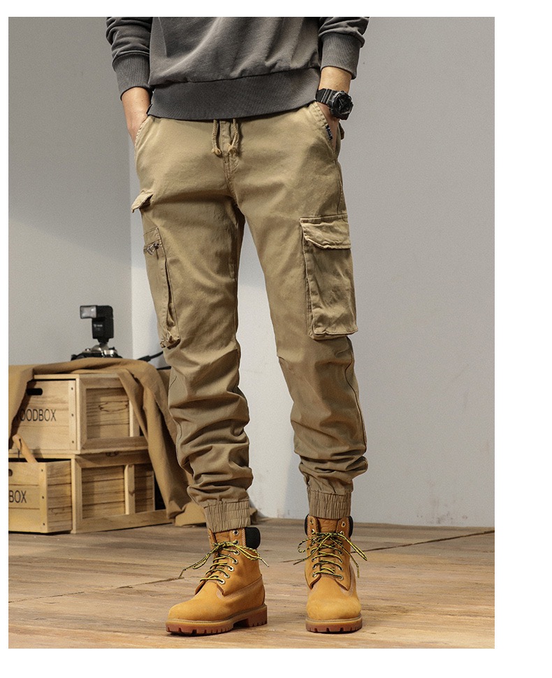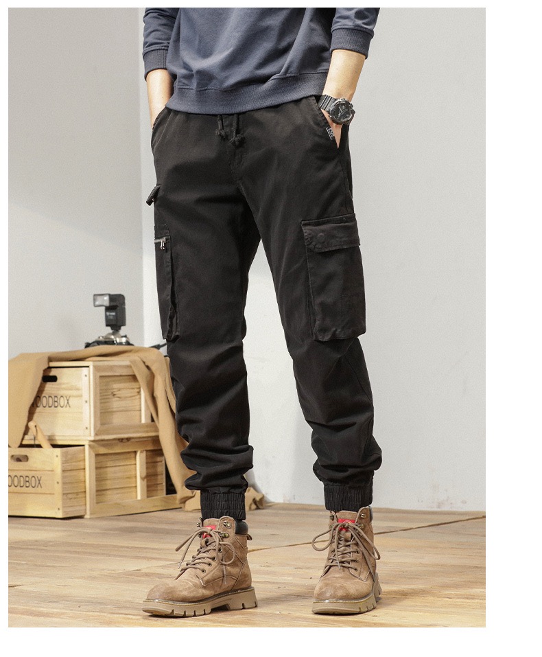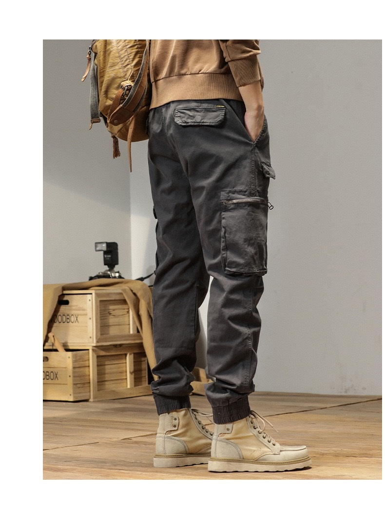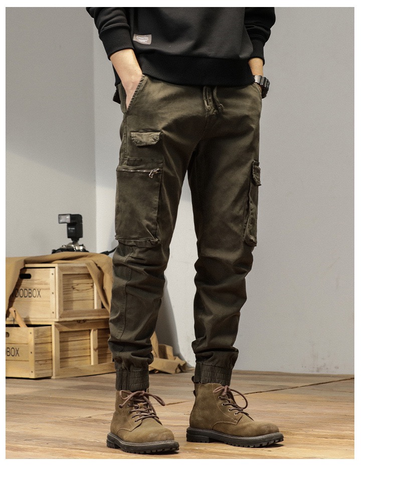 GrogeousBen Men's New Men Streetwear Zipper Leg Skinny Work Joggers Casual Trousers Multi Pockets Cotton Cargo Pants