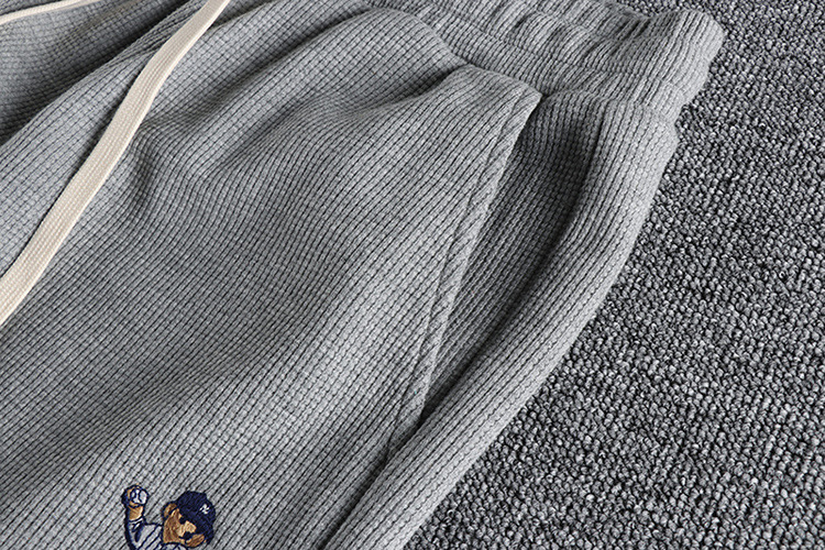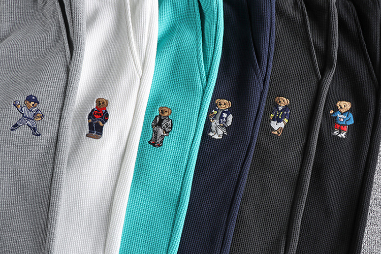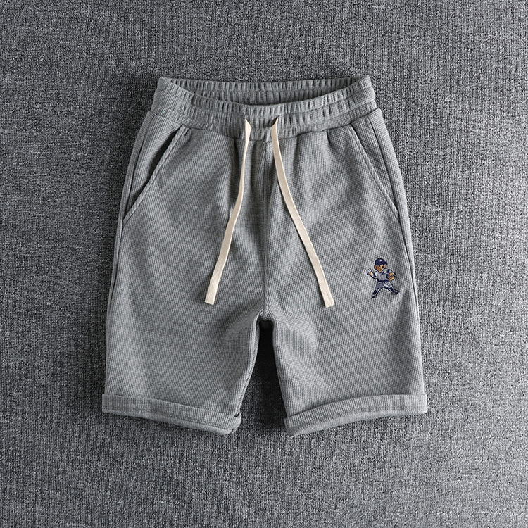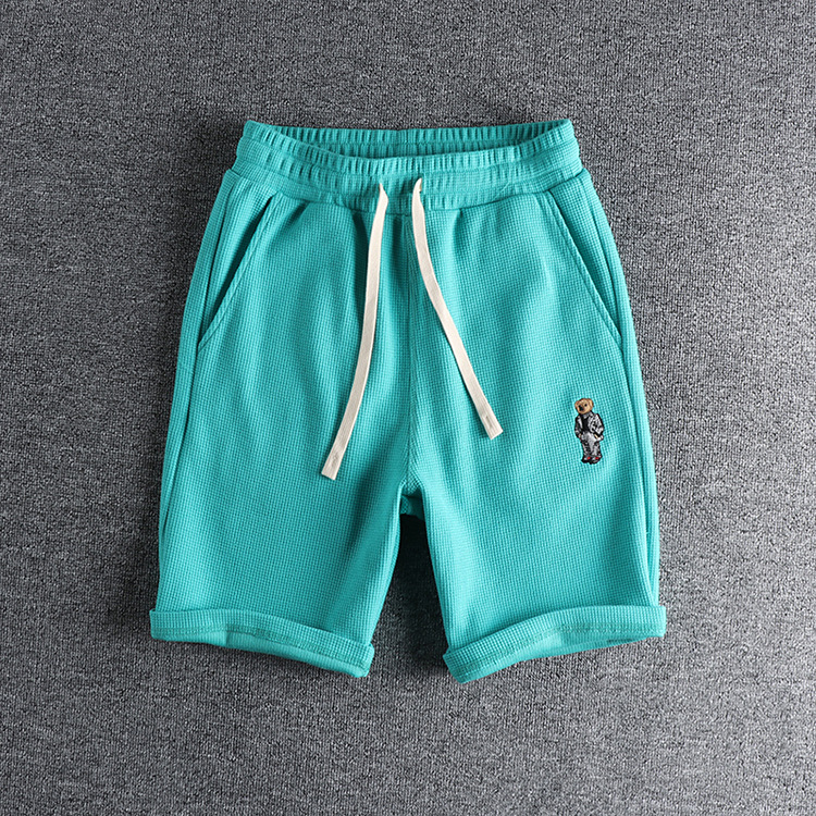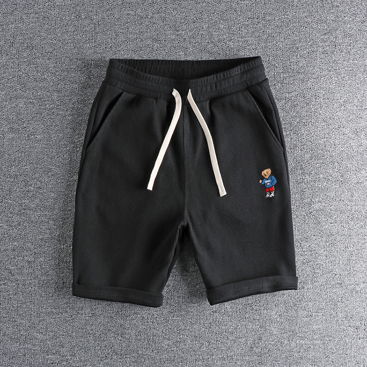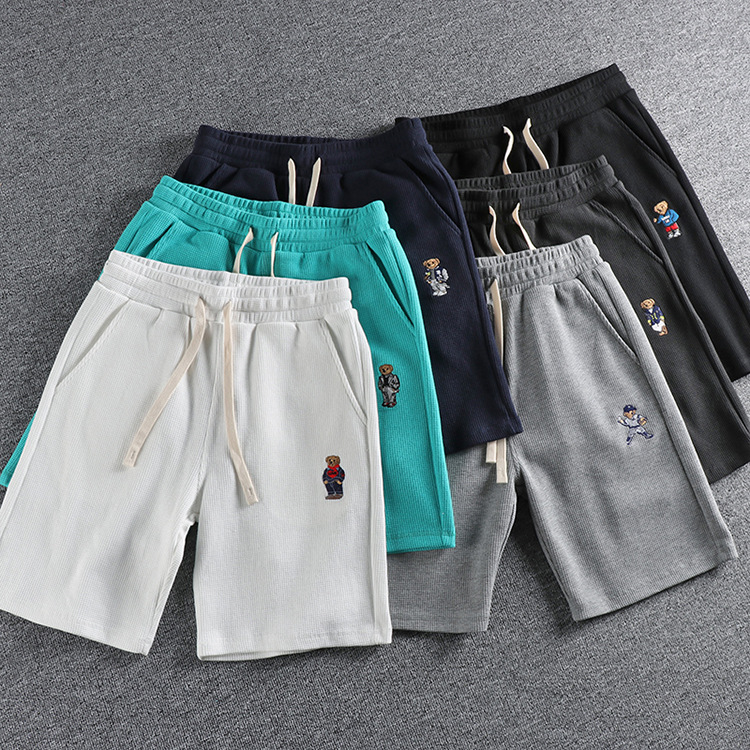 GrogeousBen Men's Summer Casual Embroidered bear wash waffle shorts men
