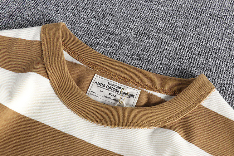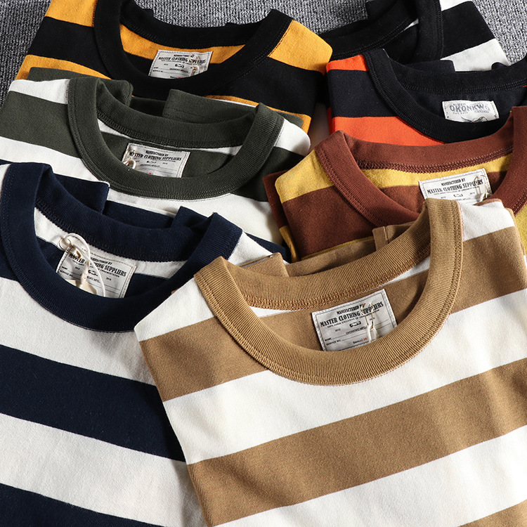 GrogeousBen Men's Thick Striped Short Sleeve Navy Requiem Men Vintage Black Blue And White Heavy Weight T-shirt Summer Pure Cotton Loose T-shirt
