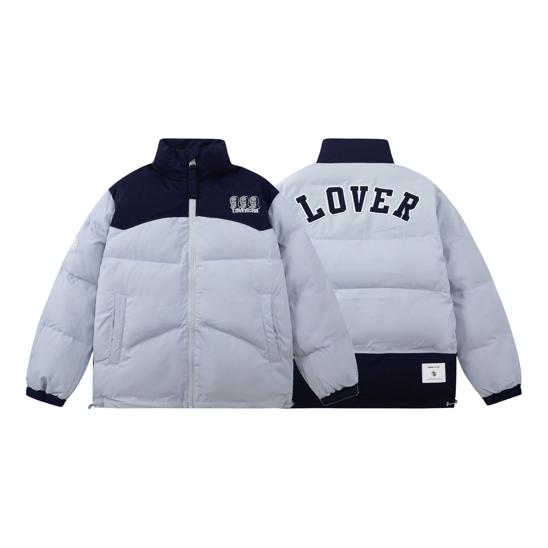 GrogeousBen Unisex American retro spliced letter embroidery cotton coat female winter cotton clothes cotton jacket