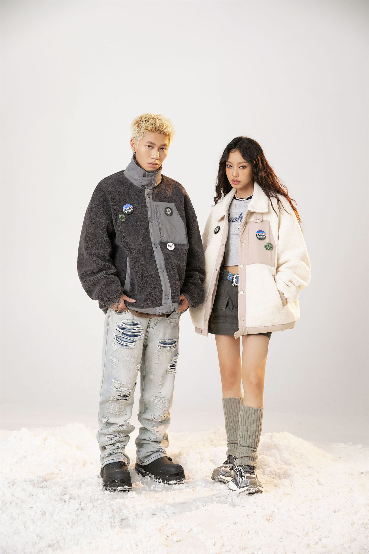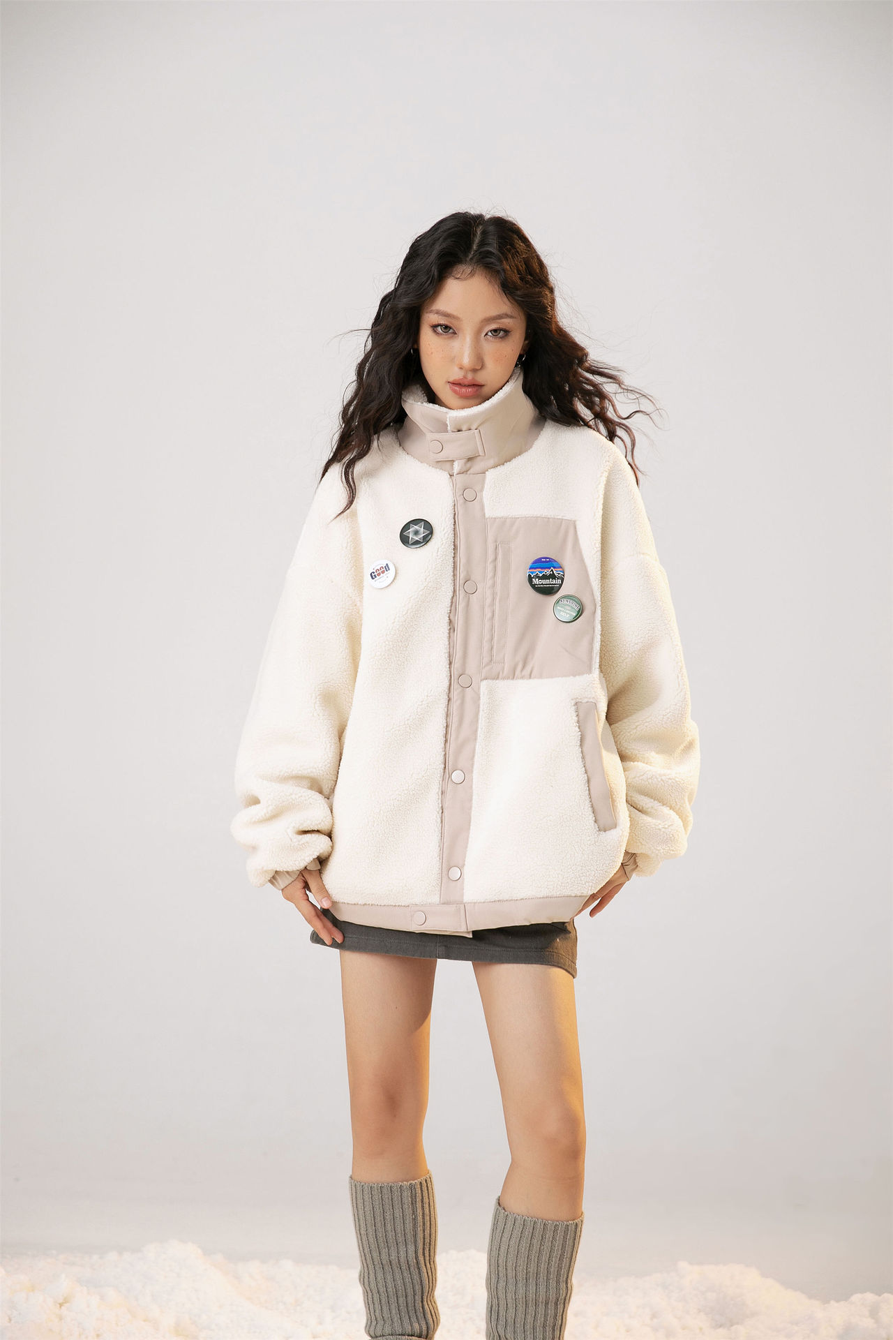 Home > GrogeousBen Unisex American style trendy lamb wool coat, loose fit with added lining and thick design, fashionable cotton jacket for winter.
