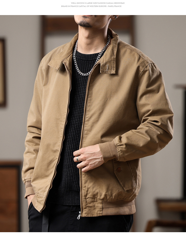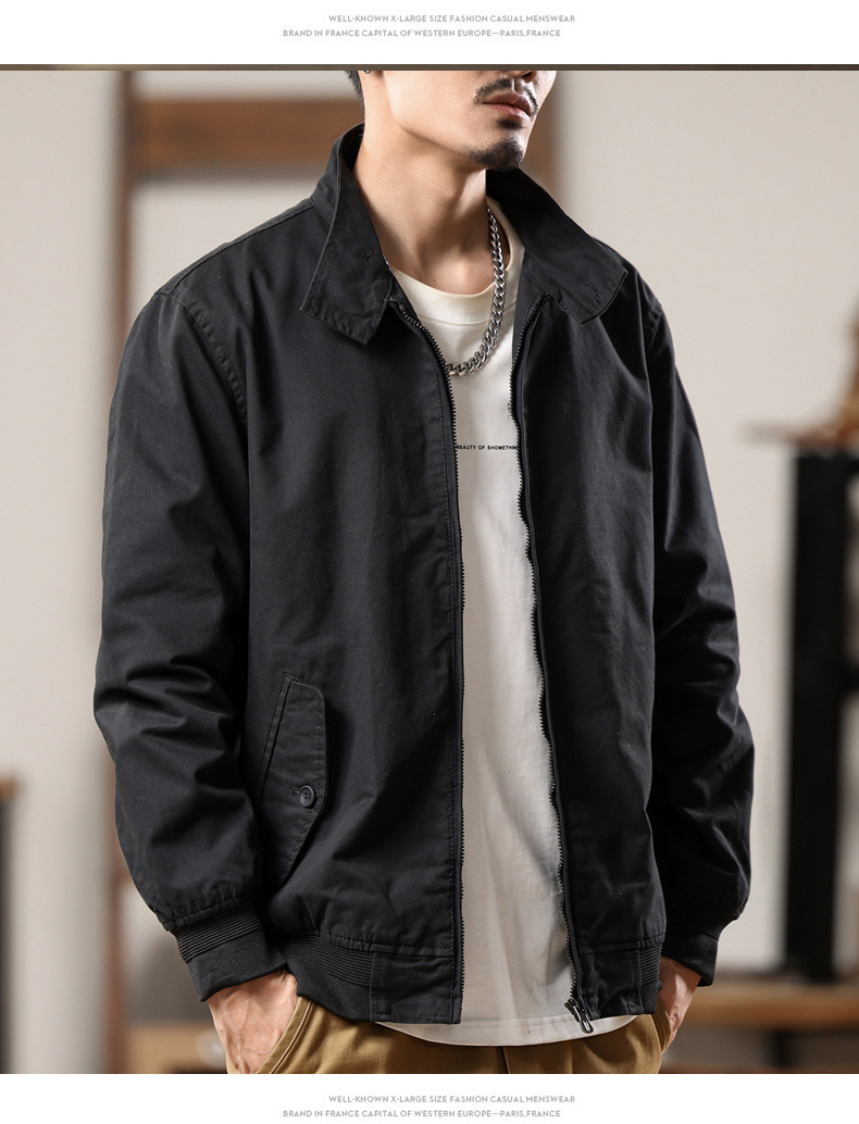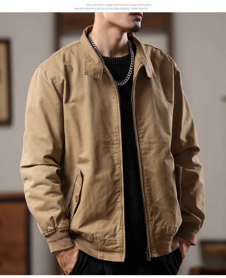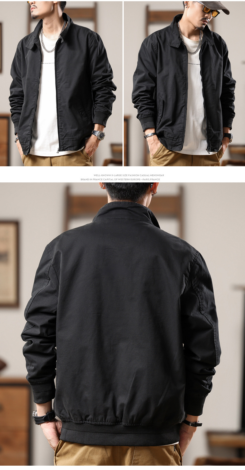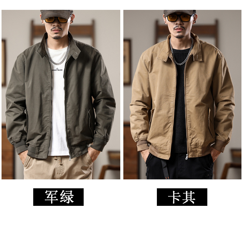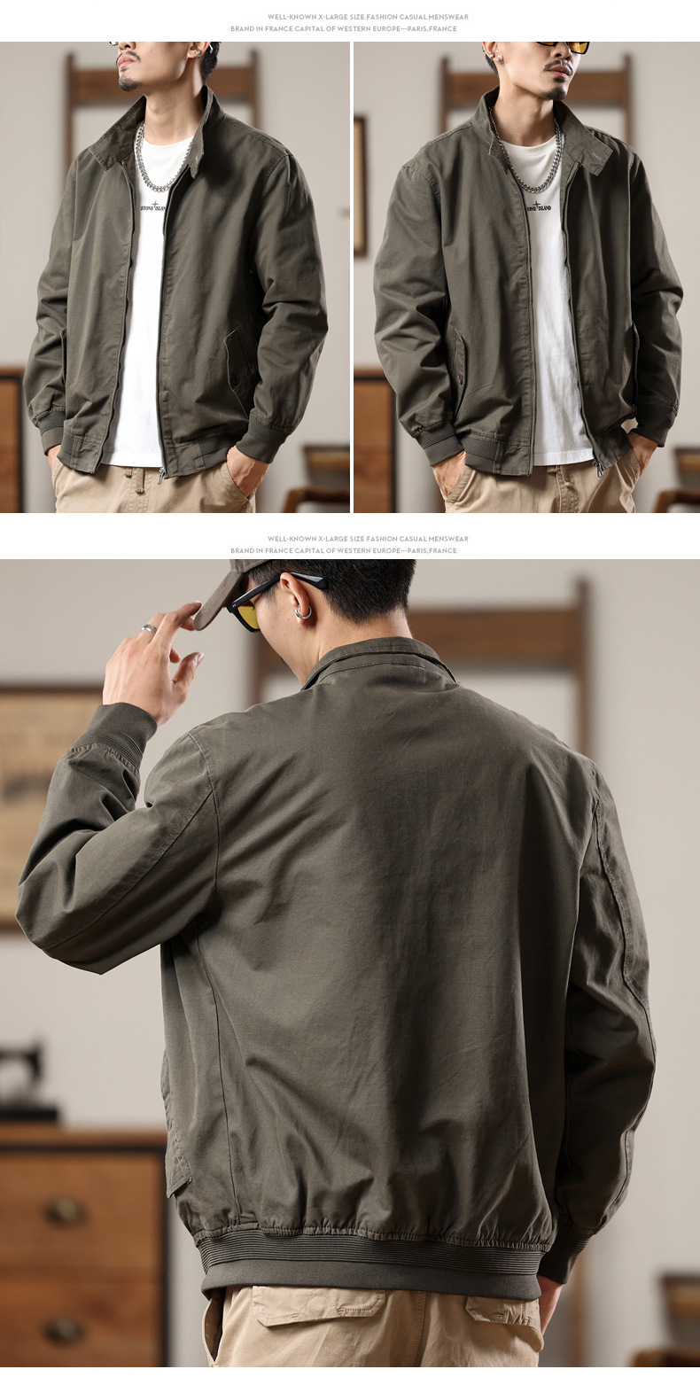 Home > Bomber&Versity Jacket > American retro Harrington jacket men's spring and autumn pure cotton washed overalls jacket loose lapel casual top