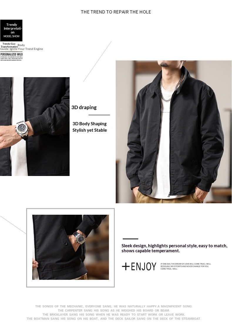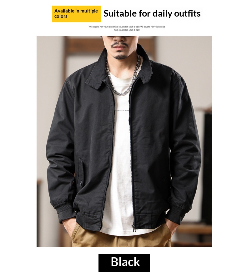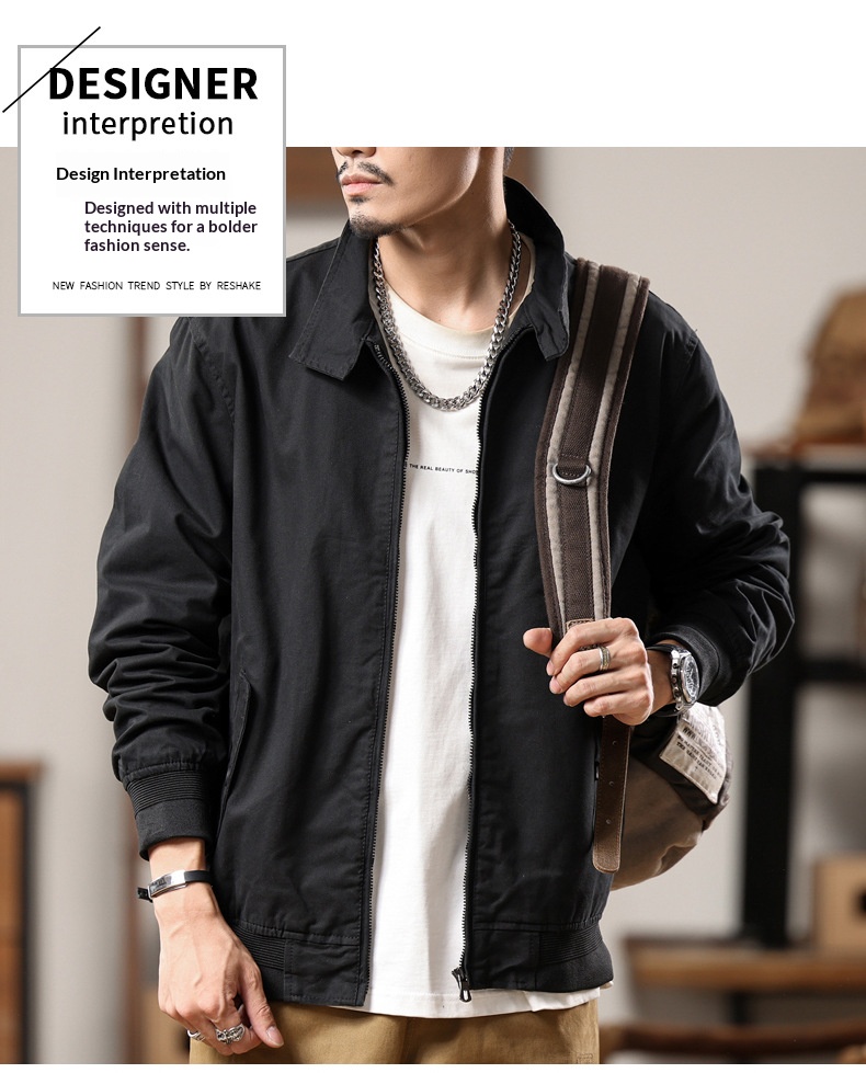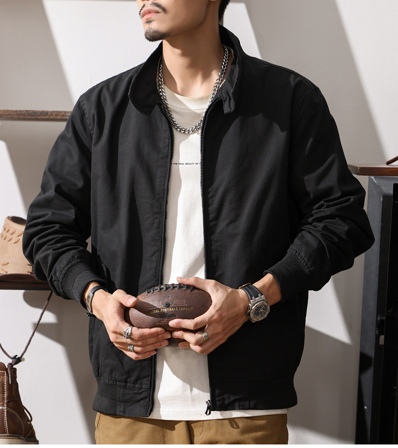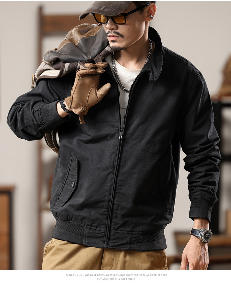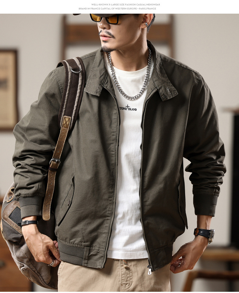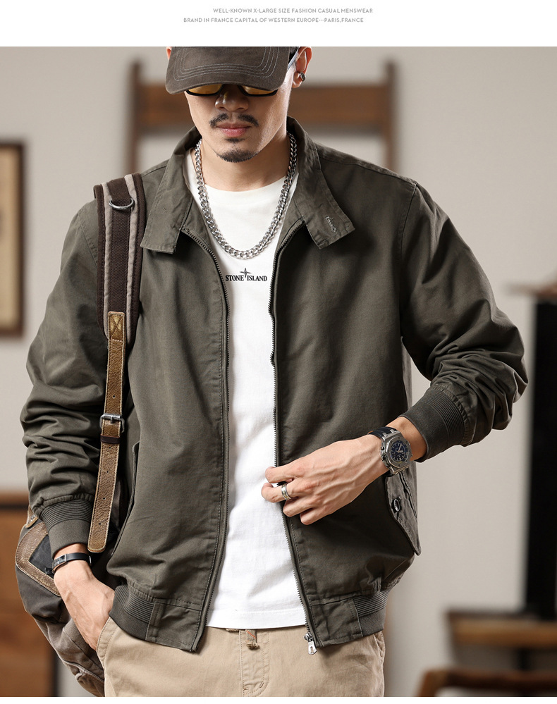 American retro Harrington jacket men's spring and autumn pure cotton washed overalls jacket loose lapel casual top