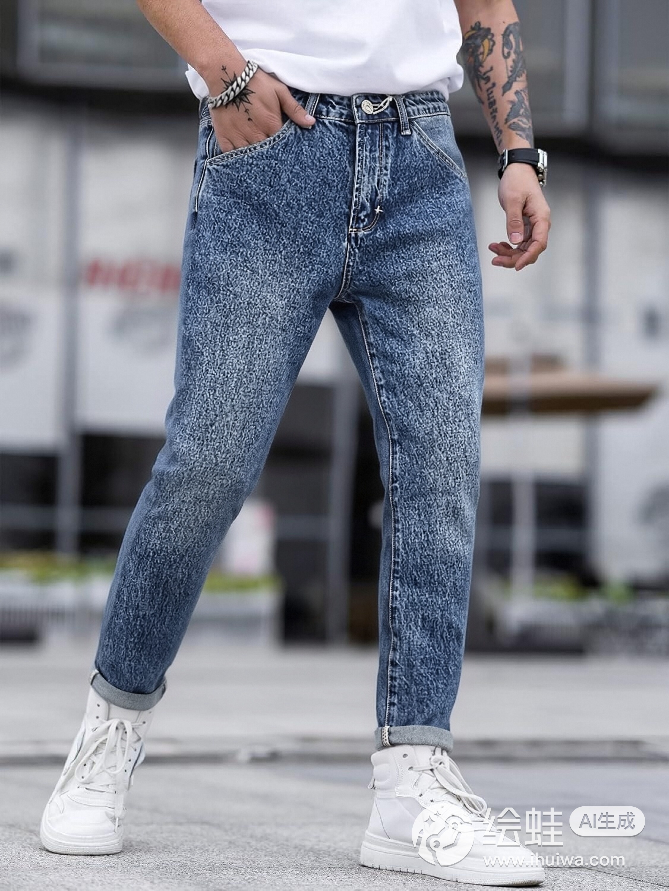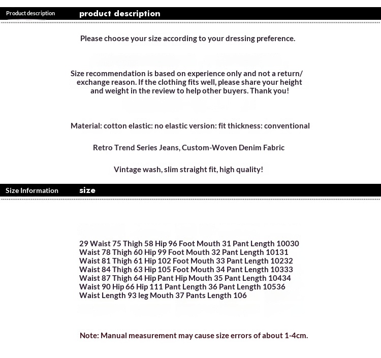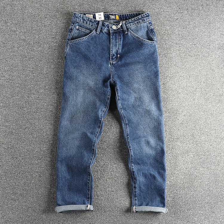 GorgeousBen Men's Retro Washed Straight Leg Non-Stretch Denim Pants