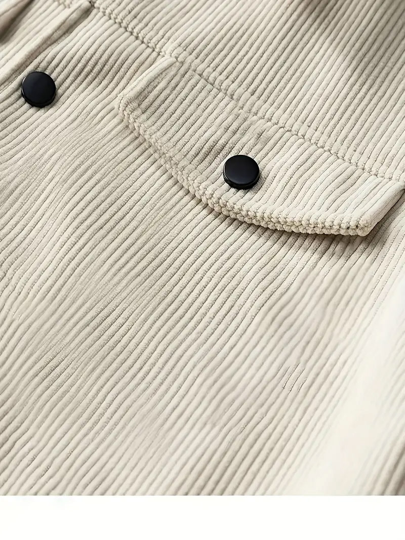 Men's Corduroy Button Jacket GorgeousBen Casual Turn-down Collar Windproof Outerwear for Fall